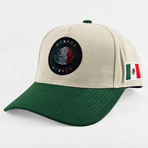 This México Beige-Green Snapback Cap blends heritage and streetwear in one essential piece. It features a high-structured crown, pre-curved brim, and an adjustable snapback closure for all-day comfort. The green underbrim adds a bold touch of contrast, tying back to the flag’s iconic colors.