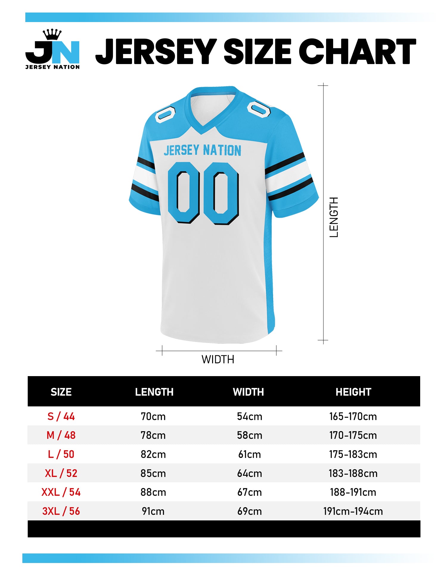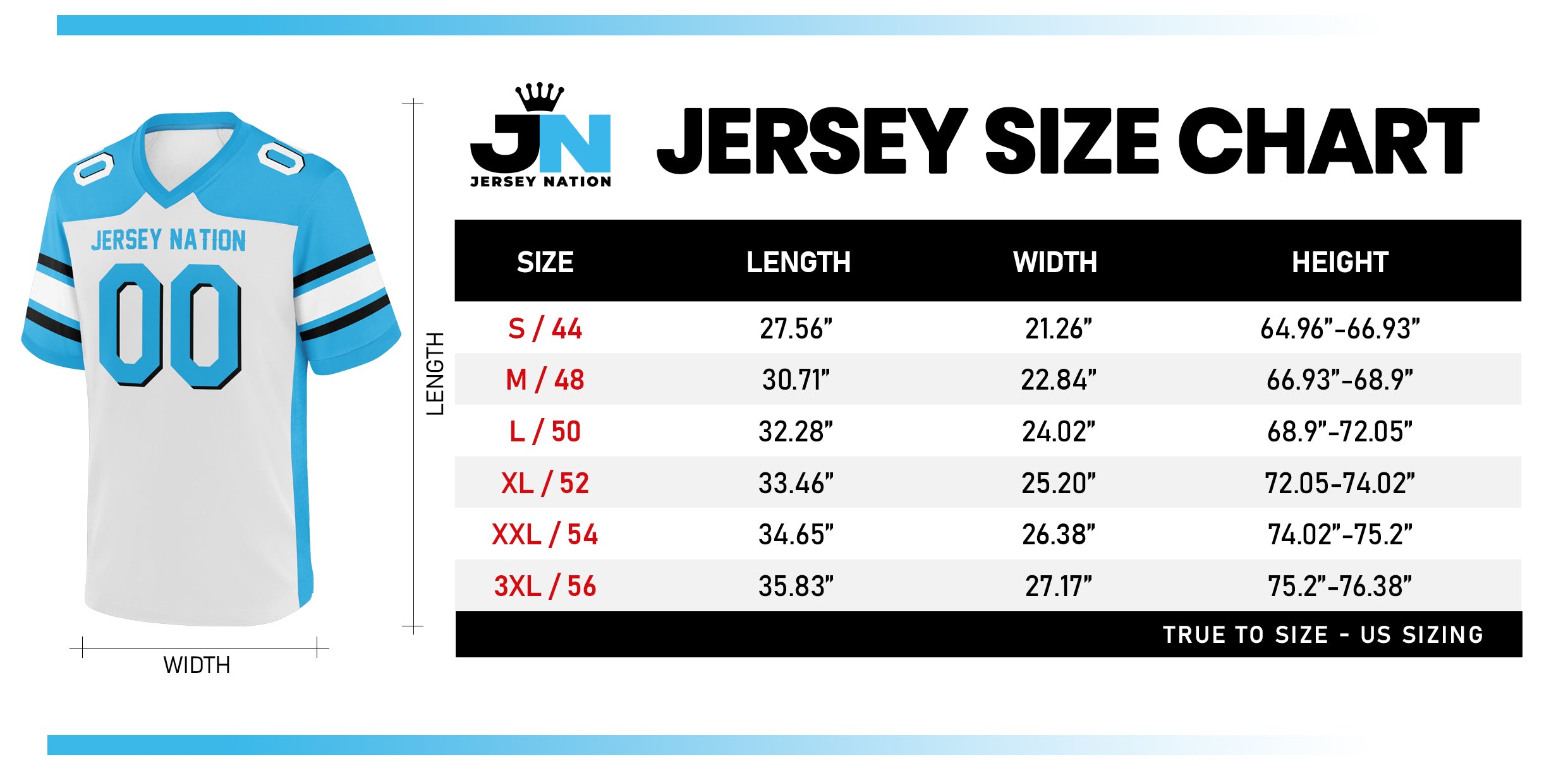 - Fully embroidered graphics: Team, Name, Number detailing, logo