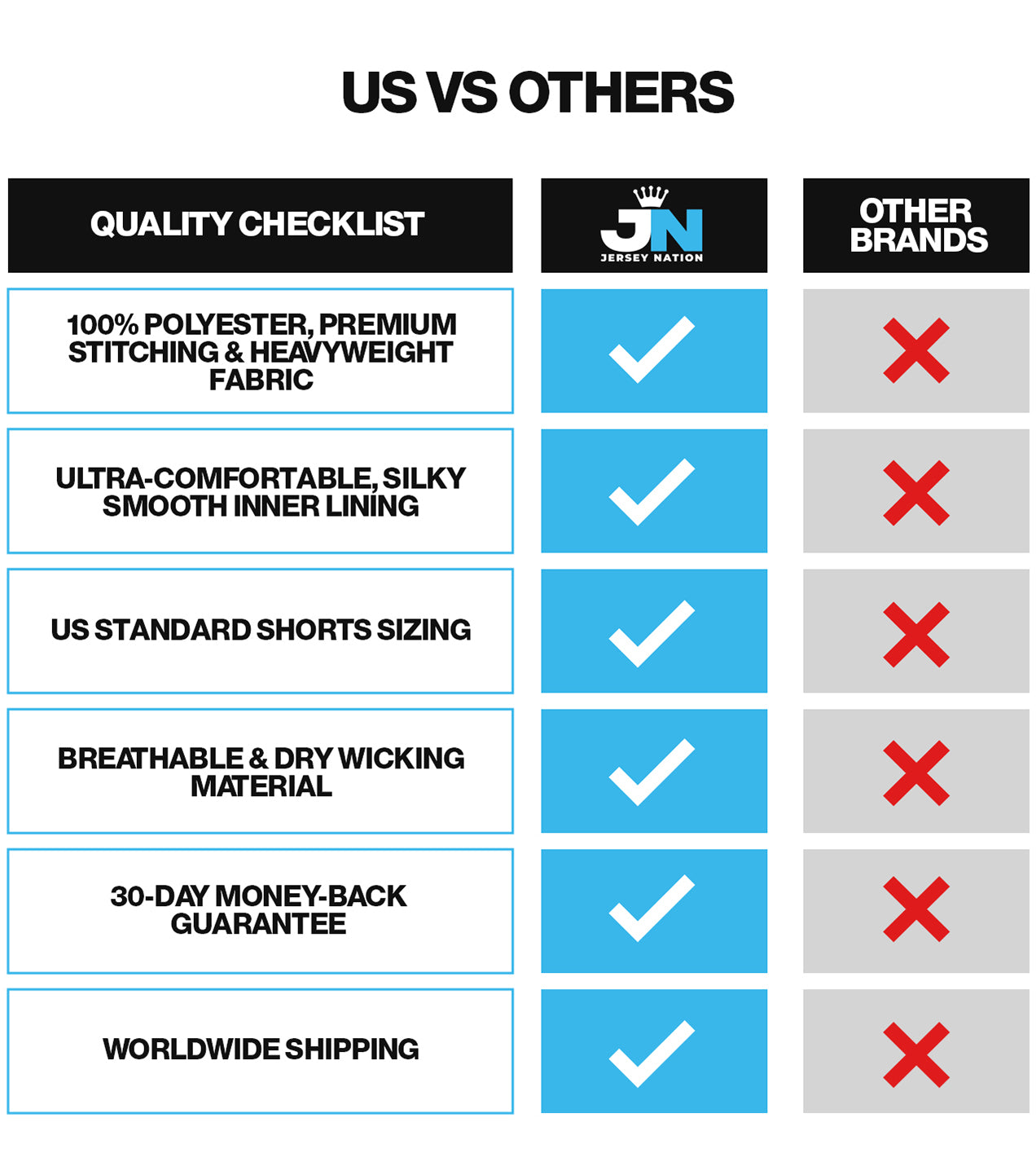 We have extremely high confidence in our products and the quality of our jerseys & shorts which is why we offer a full money back guarantee if you receive a product that has any issues with quality. Our number 1 goal is to ensure you are 100% satisfied with your purchase.