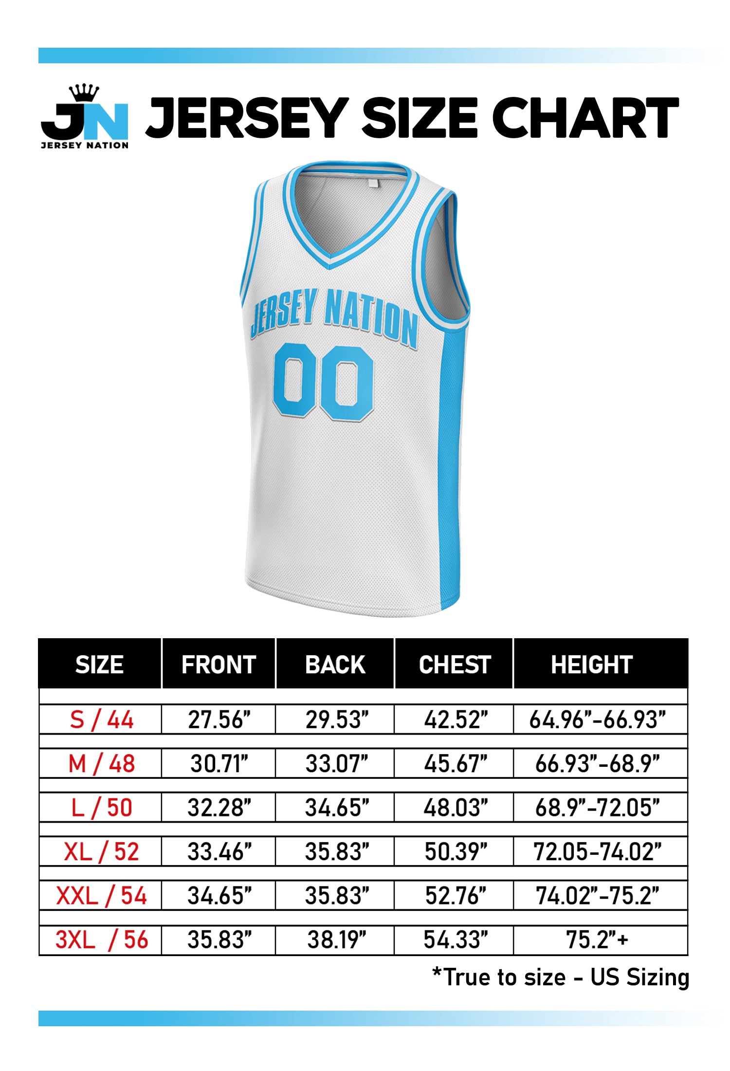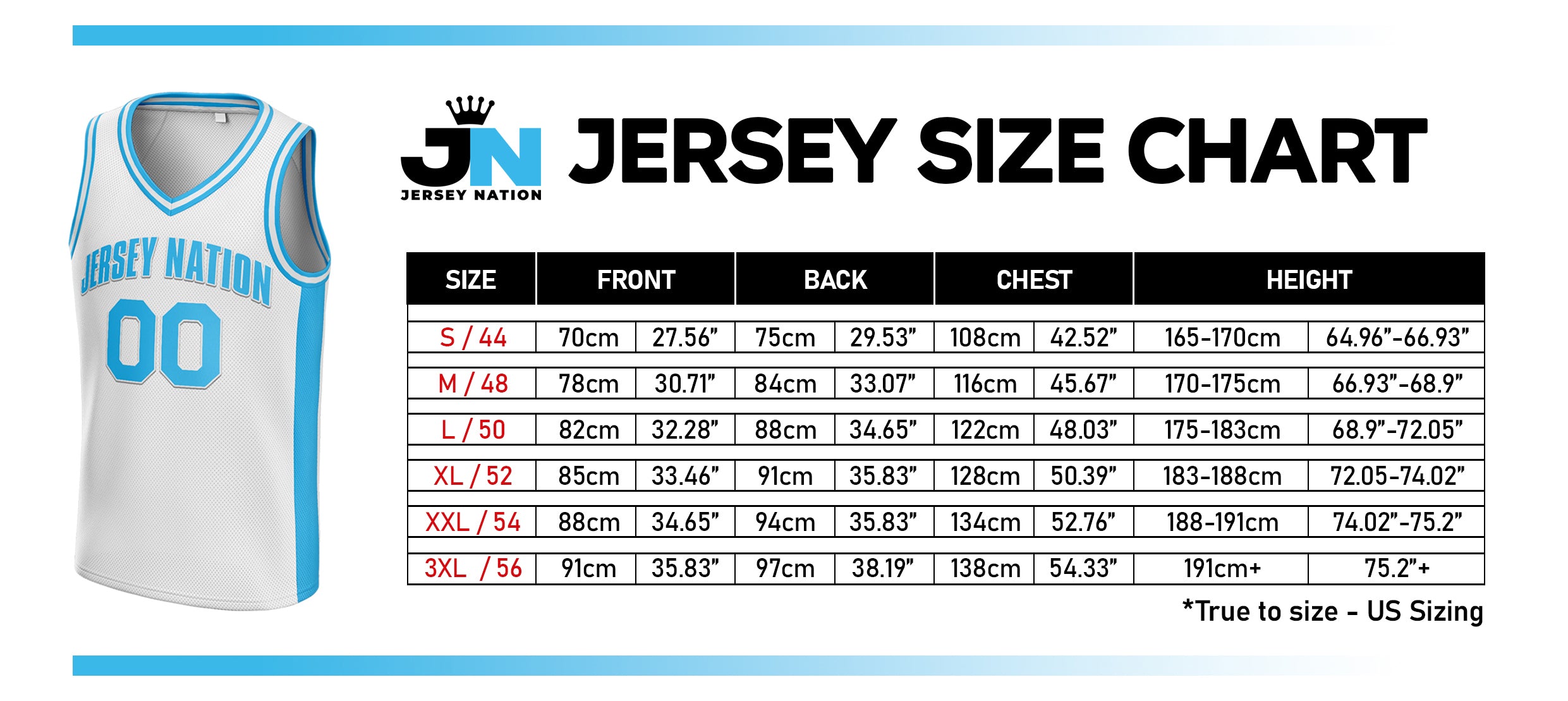 - US Standard Jersey Sizing