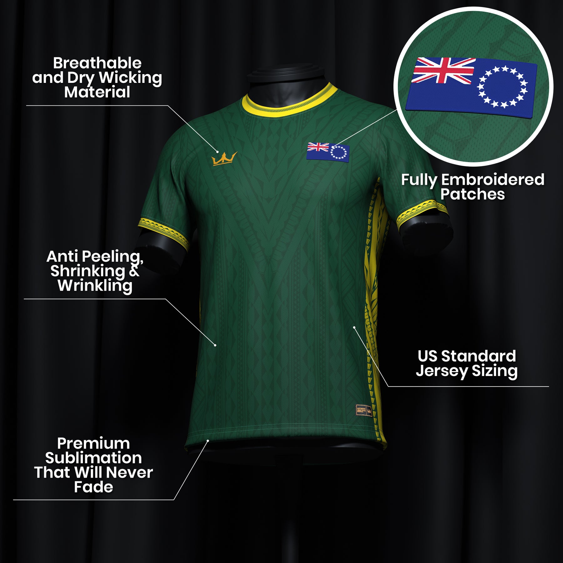 This jersey is an original design inspired by Cook Islands culture. It is not affiliated with, endorsed by, or associated with any national team, government, or sports federation.